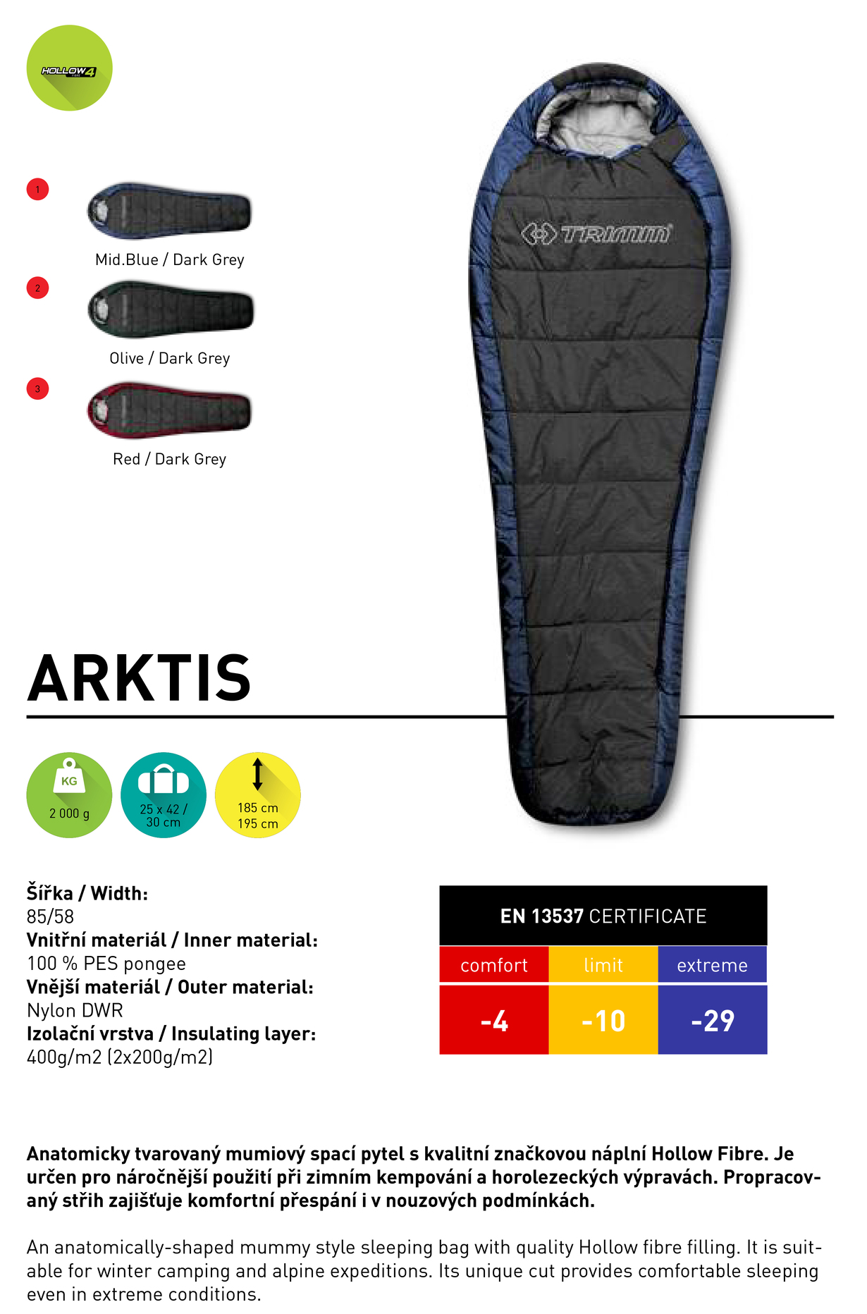 Trimm Arktis -29'C Uyku Tulumu; zorlu koşullardaki kış kamplarının yanı sıra, alternatiflerine göre düşük ağırlığı ve kapalı ölçüleri sayesinde trekking ve dağcılık gibi faaliyetler için de uygundur. EN 13537 Sertifikalı ürün, konforlu bir uyku için gereken en iyi forma ve geniş ölçülere sahiptir.